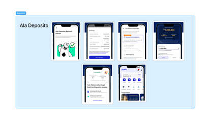 To inform our approach to designing the Online Time Deposit feature, I conducted a benchmarking study of several widely-used digital banking apps, including Jago, Aladin, and Blu. At the time, sharia-compliant deposit products were still relatively limited in the market, so these apps were used as comparative references to help us understand prevailing design patterns and user flows in the deposit journey.